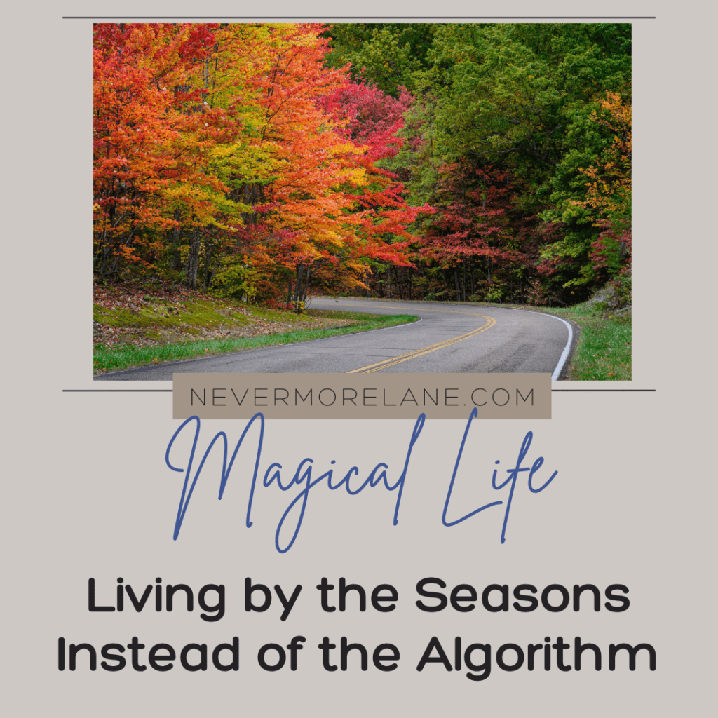 Keep coming back to the simple question: what does this season need from me right now? Sometimes the answer will be rest. Sometimes it will be action. Sometimes it will be solitude. Sometimes it will be a connection. The answer changes, and that’s exactly the point. Unlike the algorithm, which always wants the same thing from you, the seasons offer variety, depth, and a natural ebb and flow that matches how humans actually work best.